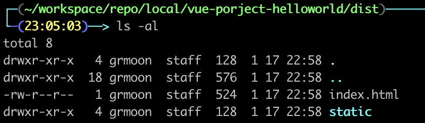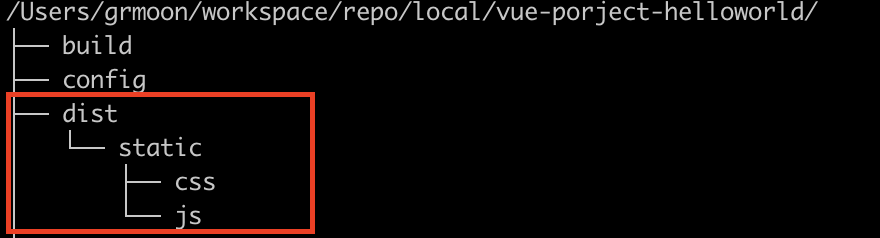 빌드된 결과물 경로는 dist 디렉터리 이하에 존재한다.