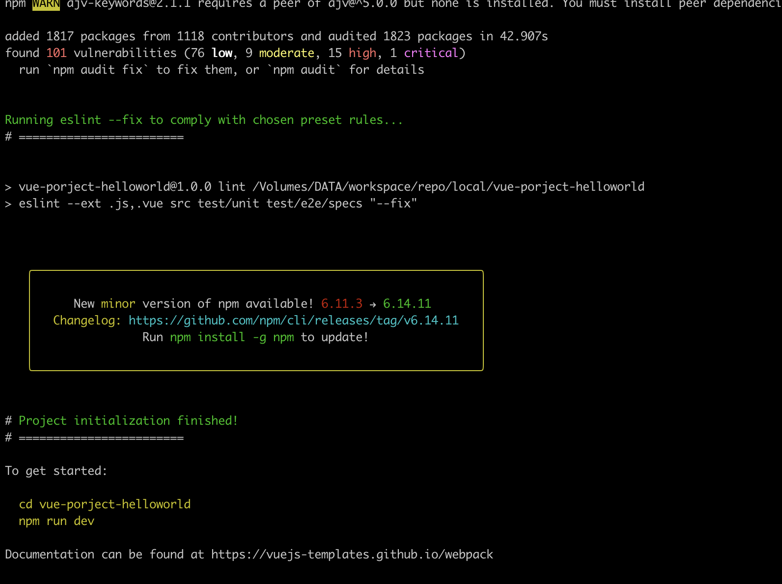 ⚠️ npm 환경이 구성되었다는 전제로 시작한다.(node,vue 설치가 되었다는 전제로 진행한다.)