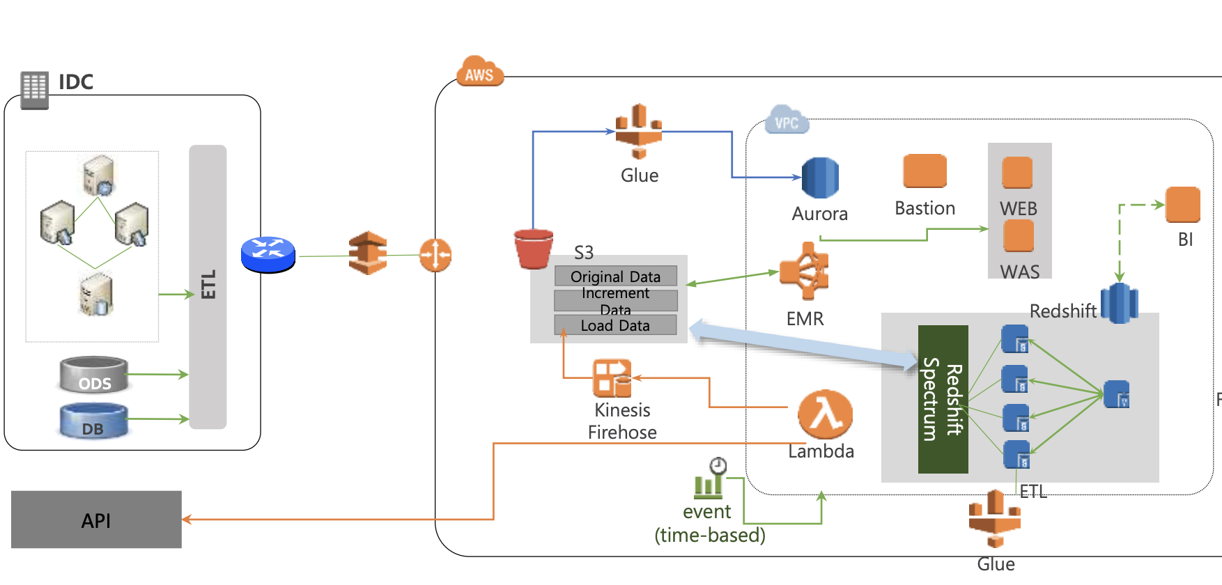 - 데이터 수집 환경: API Gateway - Kinesis - S3